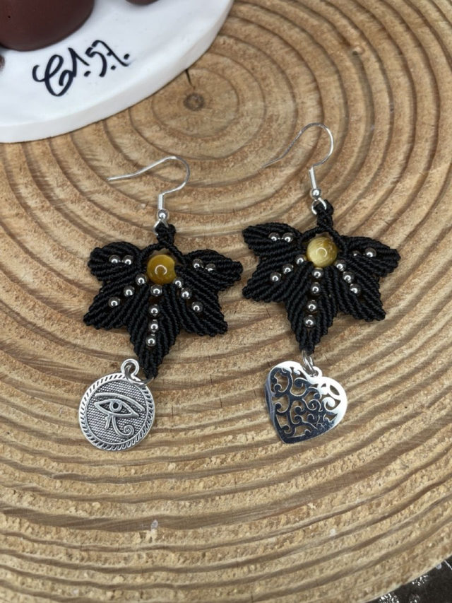 Boucles d'oreilles feuilles. Uniques et originales, elles sont réalisées par mes soins avec amour et passion du macramé.
