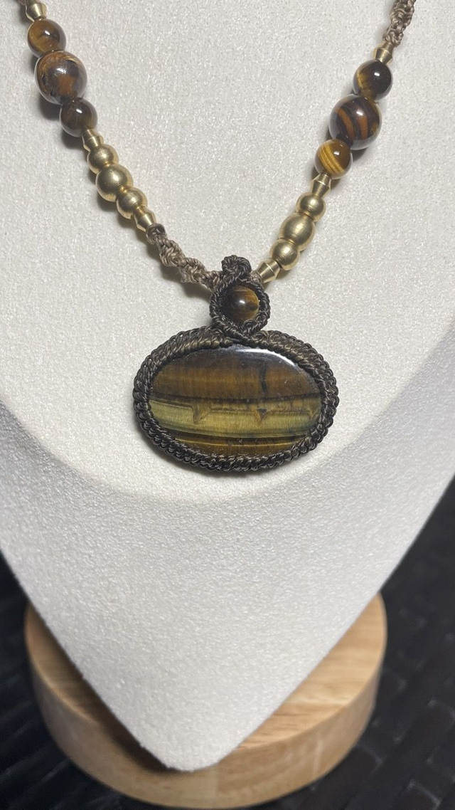 Collier que j'ai tissé autour d'une magnifique pierre oeil de tigre .