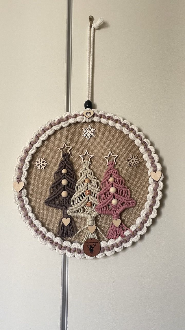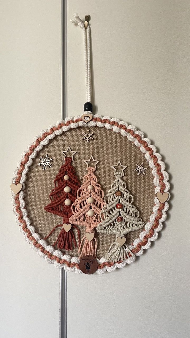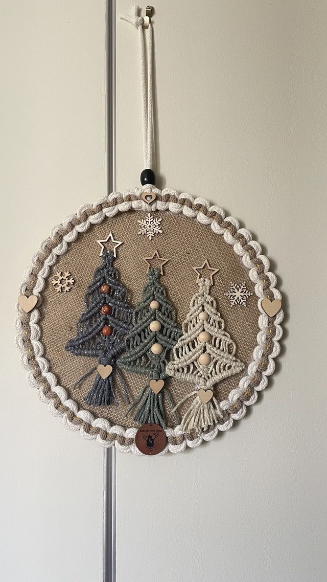 Couronnes de Noël réalisées à partir d'un cercle de 25cm.