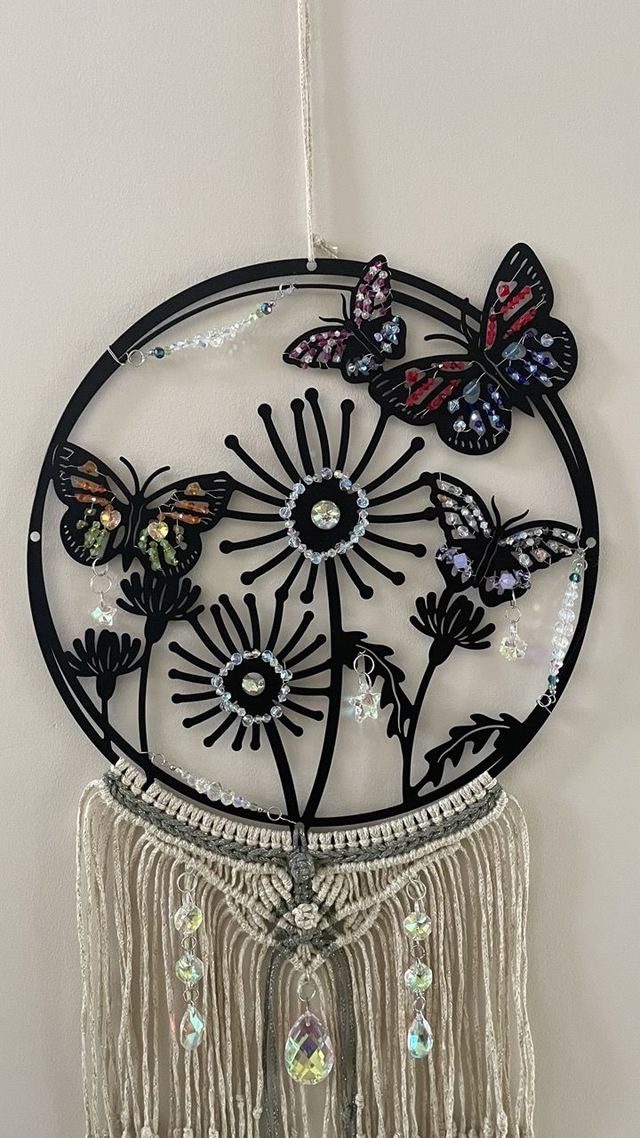 Cercle de 30cm en metal avec papillons et fleurs .